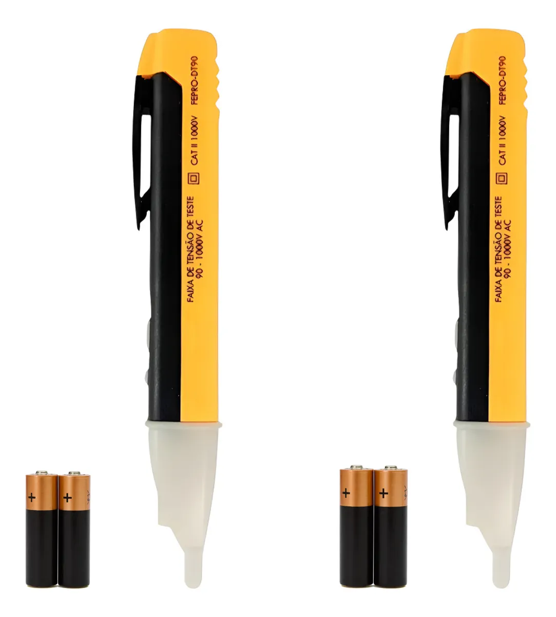 Kit 2 Caneta Detectora De Tensão Com Luz Led E Bip Sonoro Amarelo
